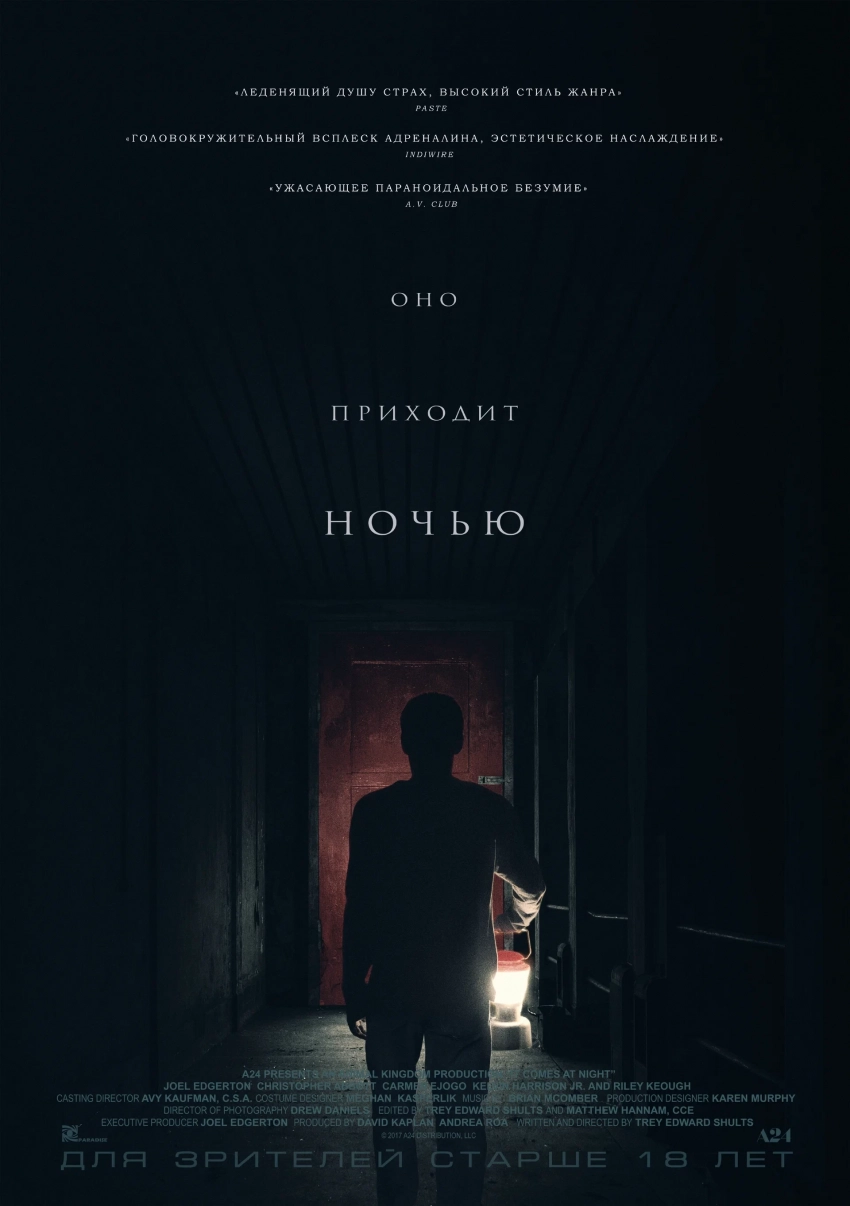 «Оно приходит ночью» — это психологический триллер, который искусно сочетает элементы хоррора и драмы, погружая зрителей в атмосферу страха и неопределенности.