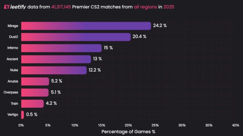 «На Train сыграли меньше всего матчей в Premier за 2025 год… Ещё, возможно, это единственная карта с самым низким средним FPS», — отметил инсайдер.