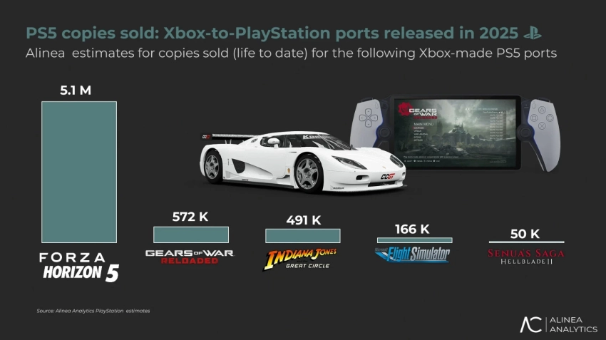 В 2025 году на PlayStation 5 вышло пять портов бывших консольных эксклюзивов Xbox Series. В настоящий момент их продажи на консоли японской корпорации, по подсчётам аналитиков, оказались следующими:
