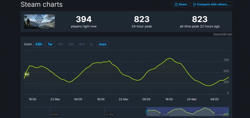Пиковый онлайн градостроительного симулятора в Steam составил 823 человека. Результат вполне соответствует нишевой игре.
